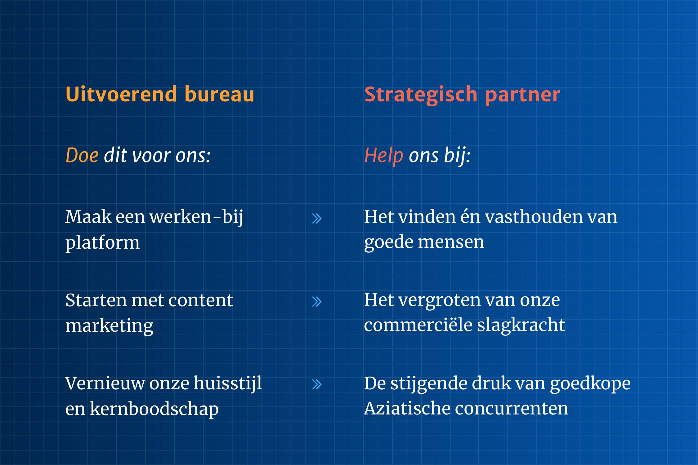 Over de (on)zin van bureau benchmarks ↓ Je hebt te veel klanten, te weinig overhead en een te klein marketingbudget. Ten minste, als je de zoveelste benchmark moet geloven die je onder je neus krijgt. Bedrijfskundig onderzoek is in het verleden vooral gedaan onder B2C bedrijven. De laatste jaren zie je dat er met name in de VS steeds meer onderzoek gedaan wordt onder zakelijk dienstverleners. Verkopers van expertise. Bureaus uit de lage landen kunnen daarvan profiteren, aangezien wij ook...